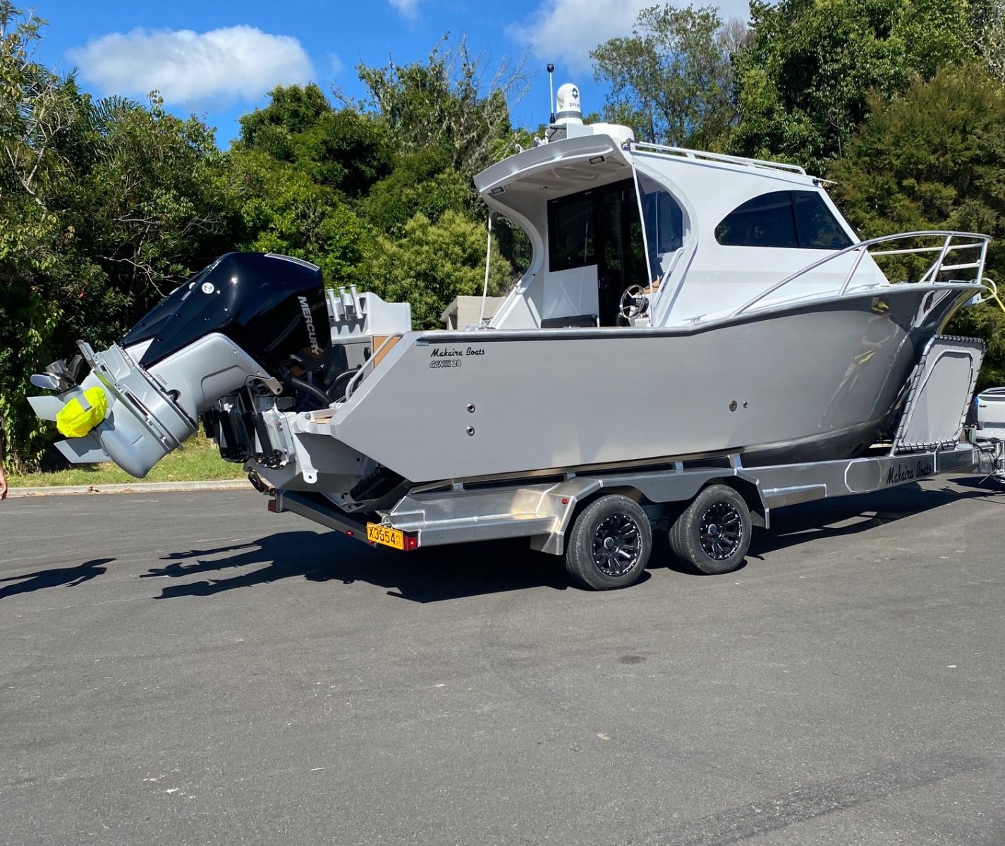 M.Y. Just Because was configured with transport in mind from the outset. The vessel is paired with a purpose-built Makaira aluminium trailer, allowing for overland movement, launch flexibility, and secure long-distance transport when required.
